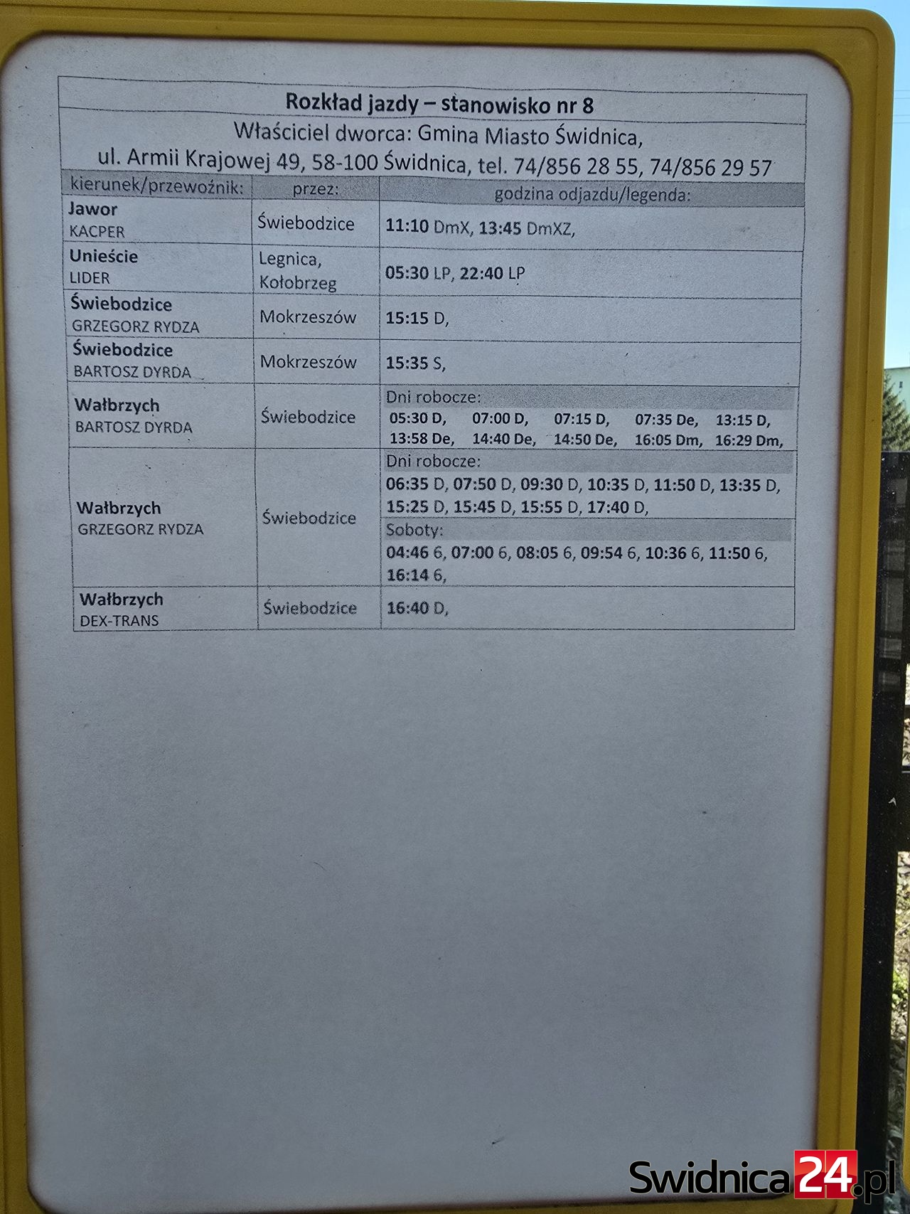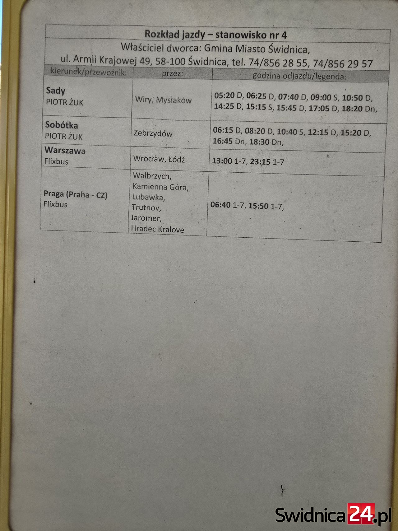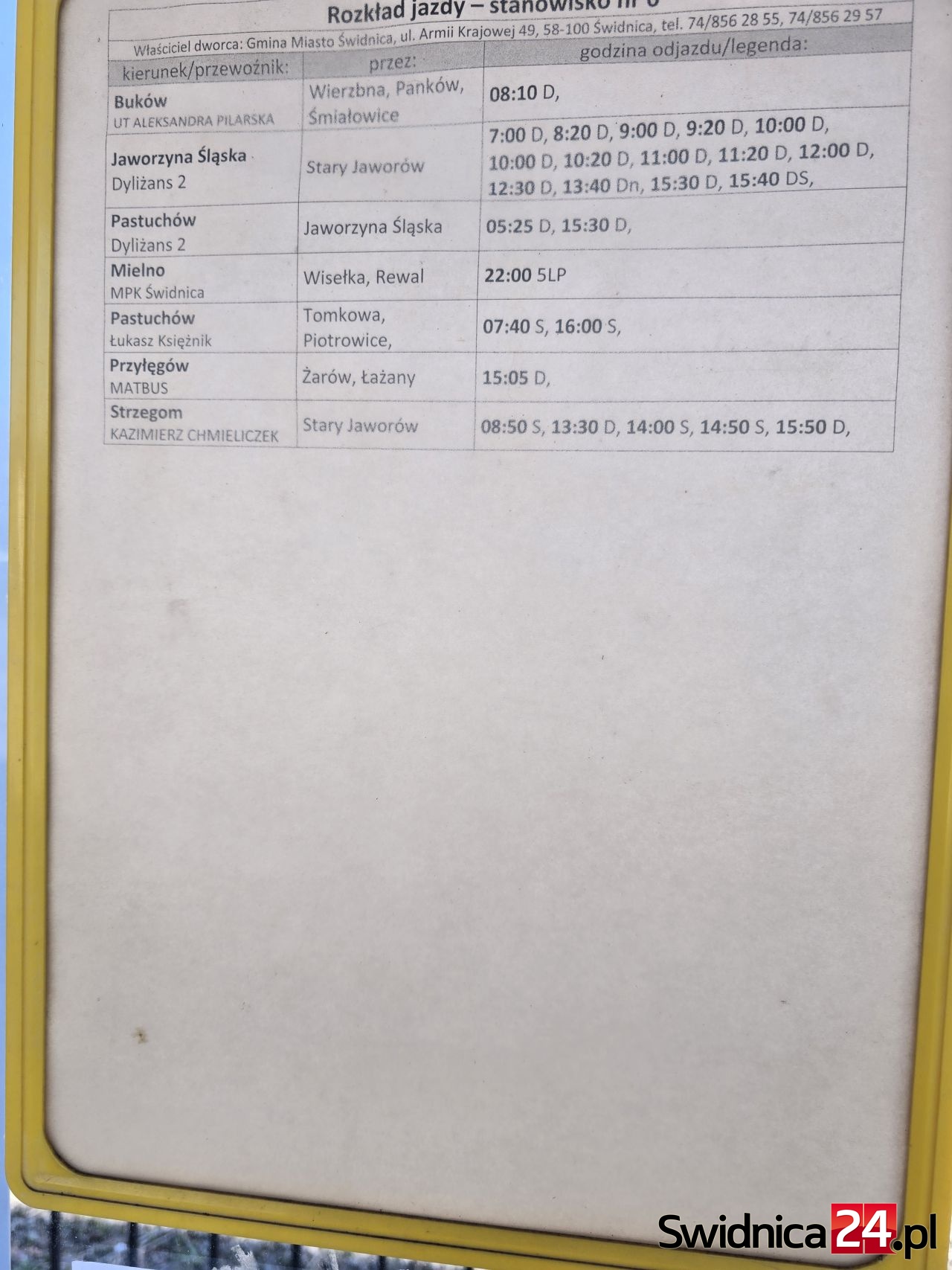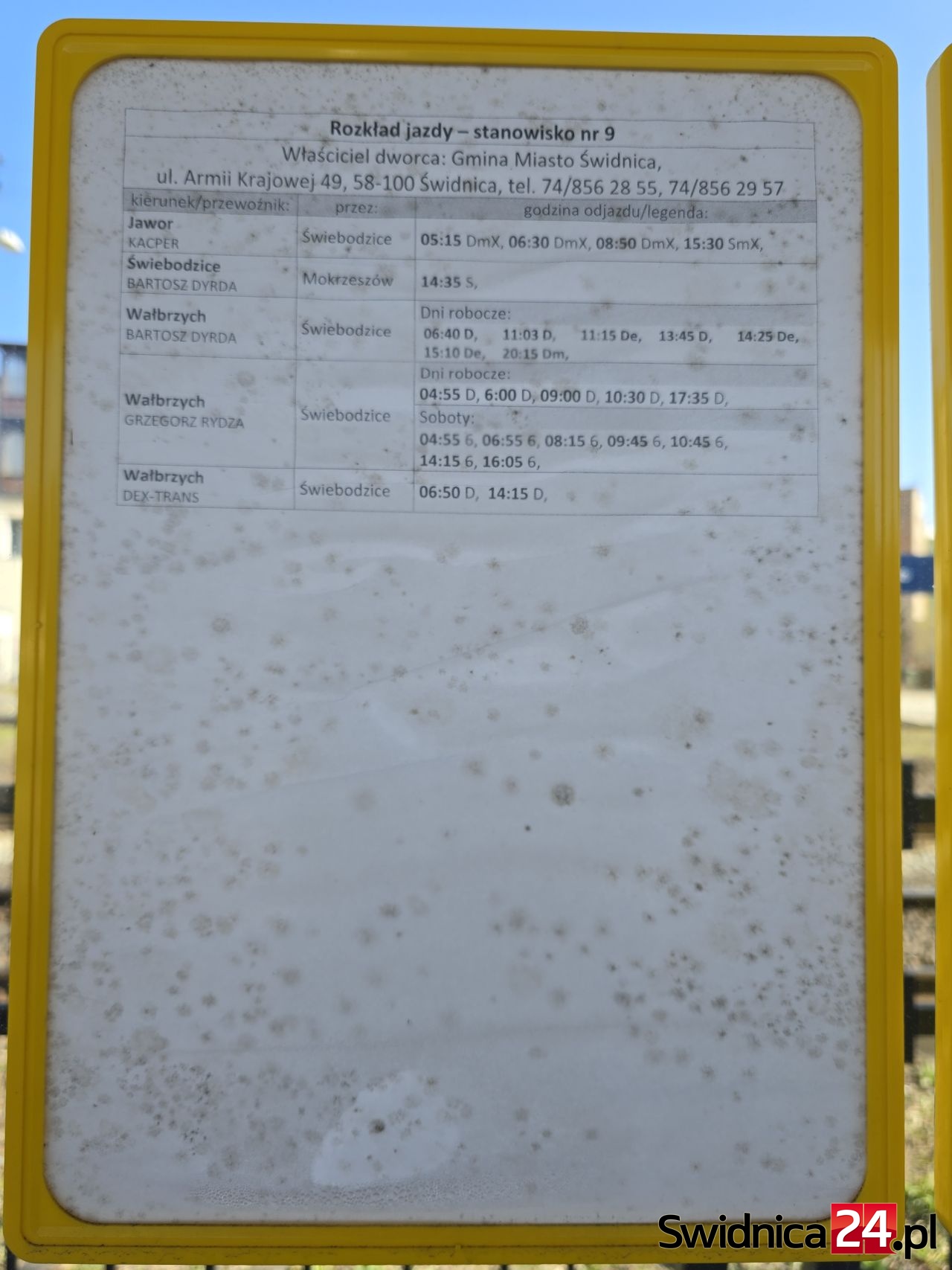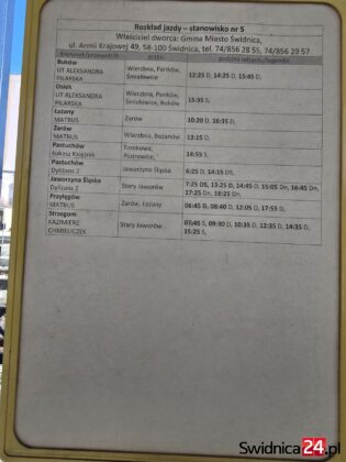 Rozkłady jazdy, dostępne na dworcu autobusowym w Świdnicy: