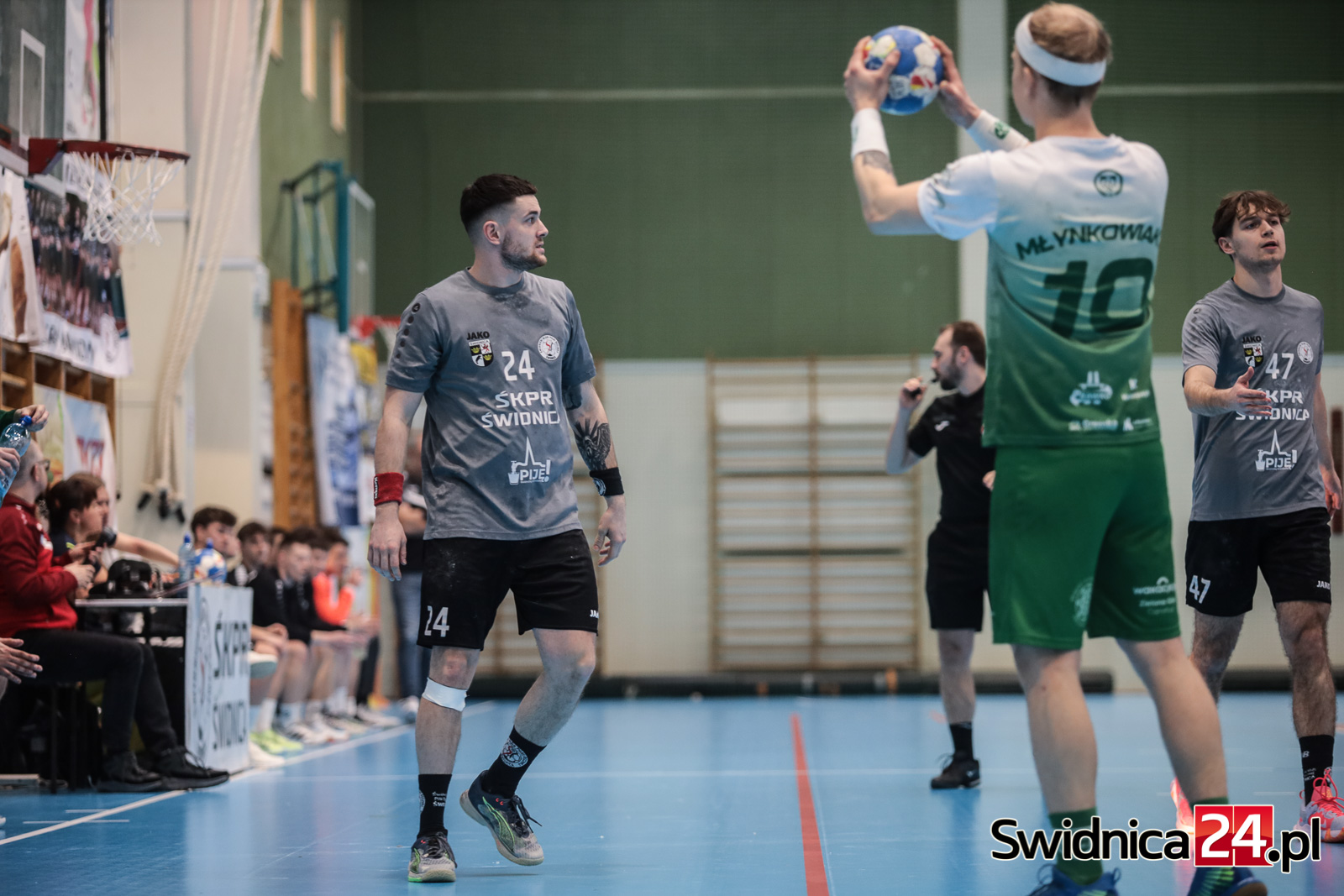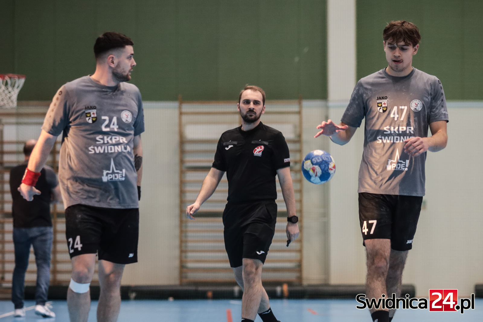 Jako pierwsi na dwubramkowe prowadzenie wyszli rywale, którzy w 2. minucie wygrywali 3:1. Później kapitalną serię 6:0 popisali się Świdniczanie. W 9. minucie na tablicy świetlnej zrobiło się wtedy 7:3. Gospodarze utrzymywali dystans w granicy 3-4 trafień, aż do 27. minuty, kiedy to było 17:14 dla ŚKPR-u. Końcówkę nieco lepiej rozegrali przeciwnicy, zbliżając się do nas. Do szatni obie ekipy schodziły przy jednobramkowym prowadzeniu świdnickiego zespołu (18:17).