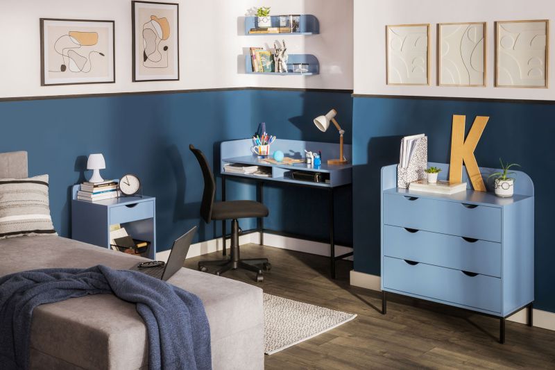 Wyraźne zaznaczone strefy pomagają nastolatkowi utrzymać porządek w pokoju i oddzielać obowiązki od odpoczynku, co wspiera koncentrację i komfort psychiczny. Gdy miejsca w pomieszczeniu jest mało, warto postawić na meble multifunkcyjne. Przykładowo, łóżko z biurkiem, szufladą i półką jest idealne do pokoju nastolatka, w którym nie ma za dużo miejsca.
