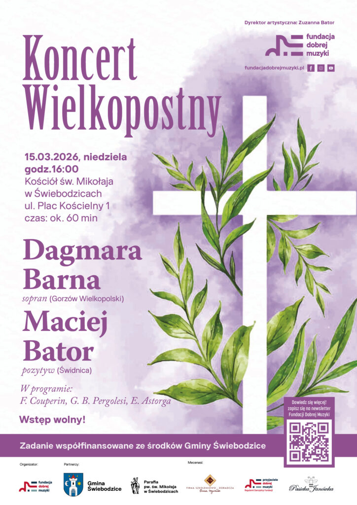 – Po raz pierwszy Fundacja Dobrej Muzyki organizuje wydarzenie w tej świebodzickiej świątyni – przestrzeni o pięknej, sprzyjającej skupieniu akustyce. Historyczne wnętrze oraz kameralna atmosfera miejsca tworzą naturalne tło dla muzyki sakralnej i refleksyjnej, szczególnie w czasie Wielkiego Postu – zapowiada fundacja.