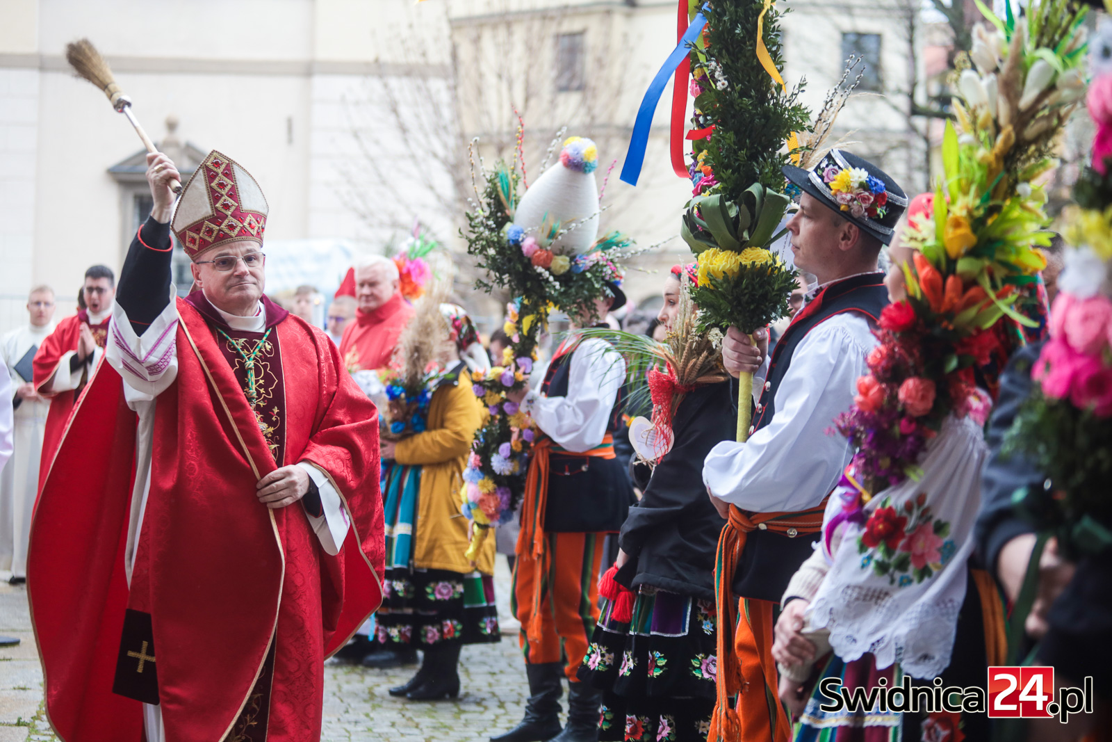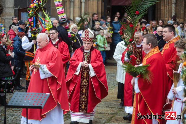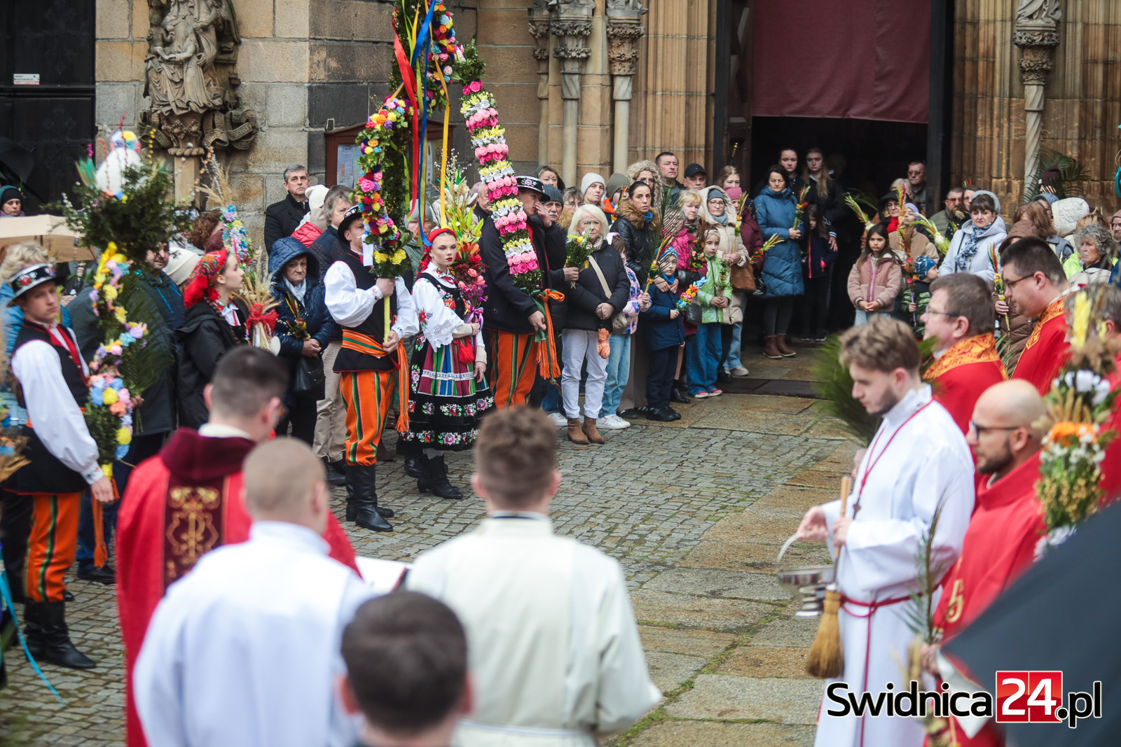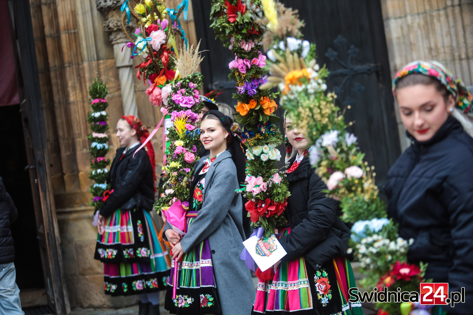Palmy zostały wykonane na konkurs organizowany przez Świdnicki Ośrodek Kultury już od 29 lat z inicjatywy Kazimiery Momot. W tym roku do konkursu zgłoszono 37 prac mierzących od 25 centymetrów do ponad 5 metrów. W Niedzielę Palmową tradycyjnie już odbył się barwny korowód z konkursowymi palmami, które z Rynku do katedry zanieśli tancerze z zespołu prowadzonego przez Marię i Wojciecha Skiślewiczów. Przed świdnicką świątynią zostały one poświęcone przez biskupa Marka Mendyka.