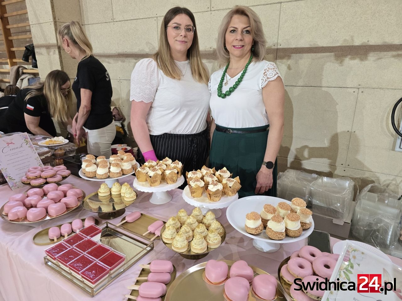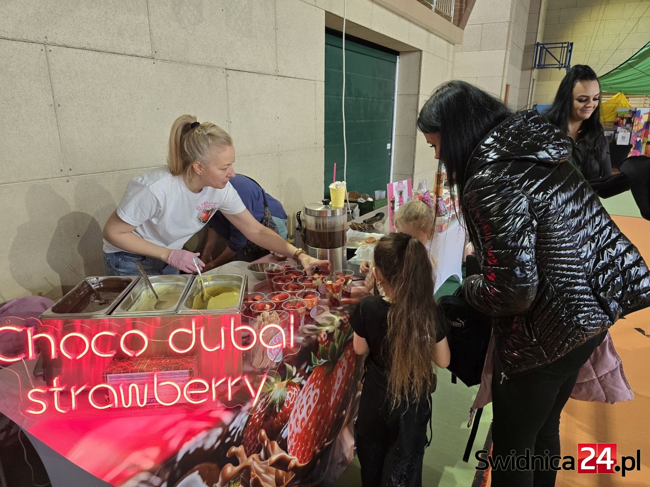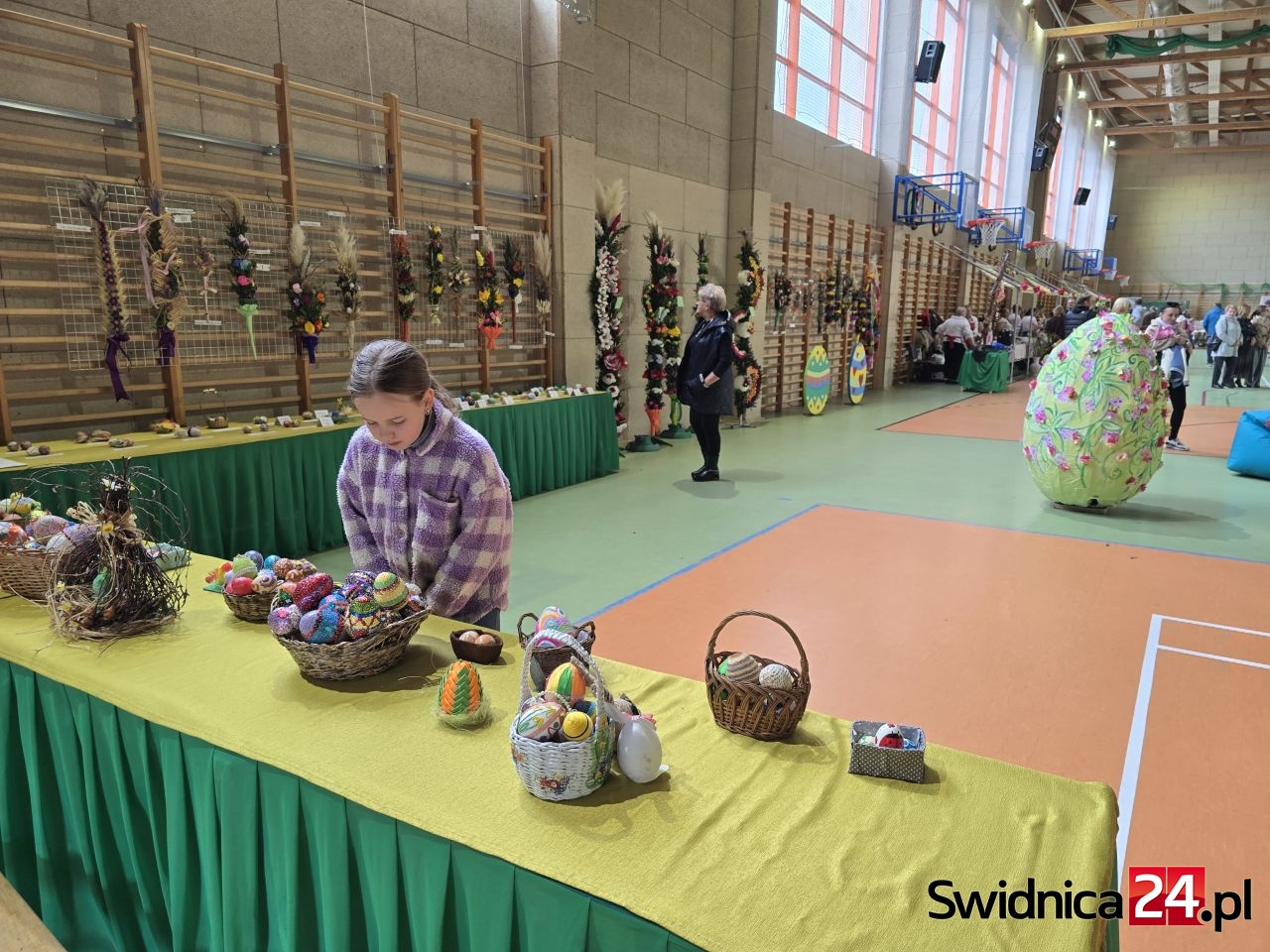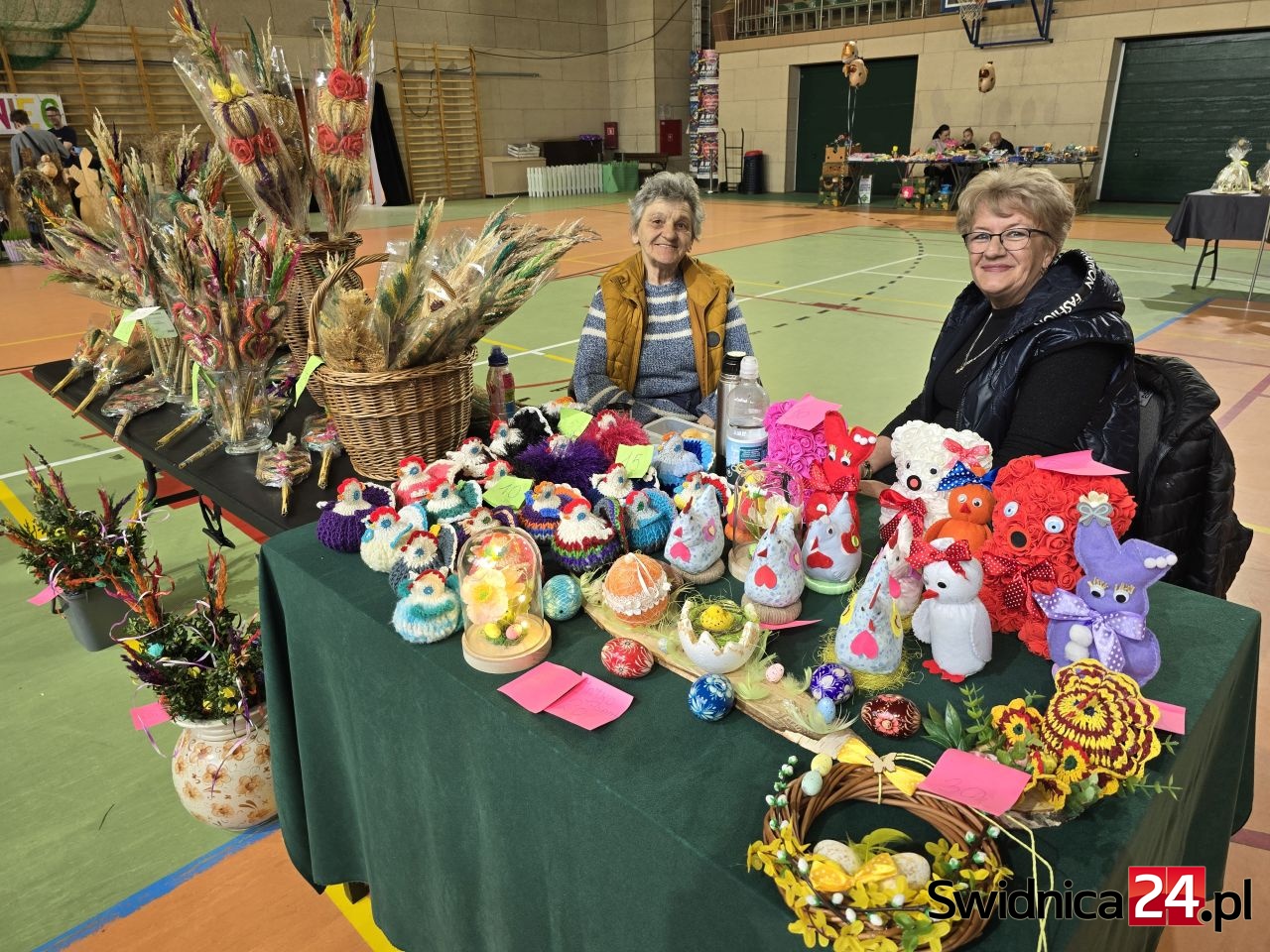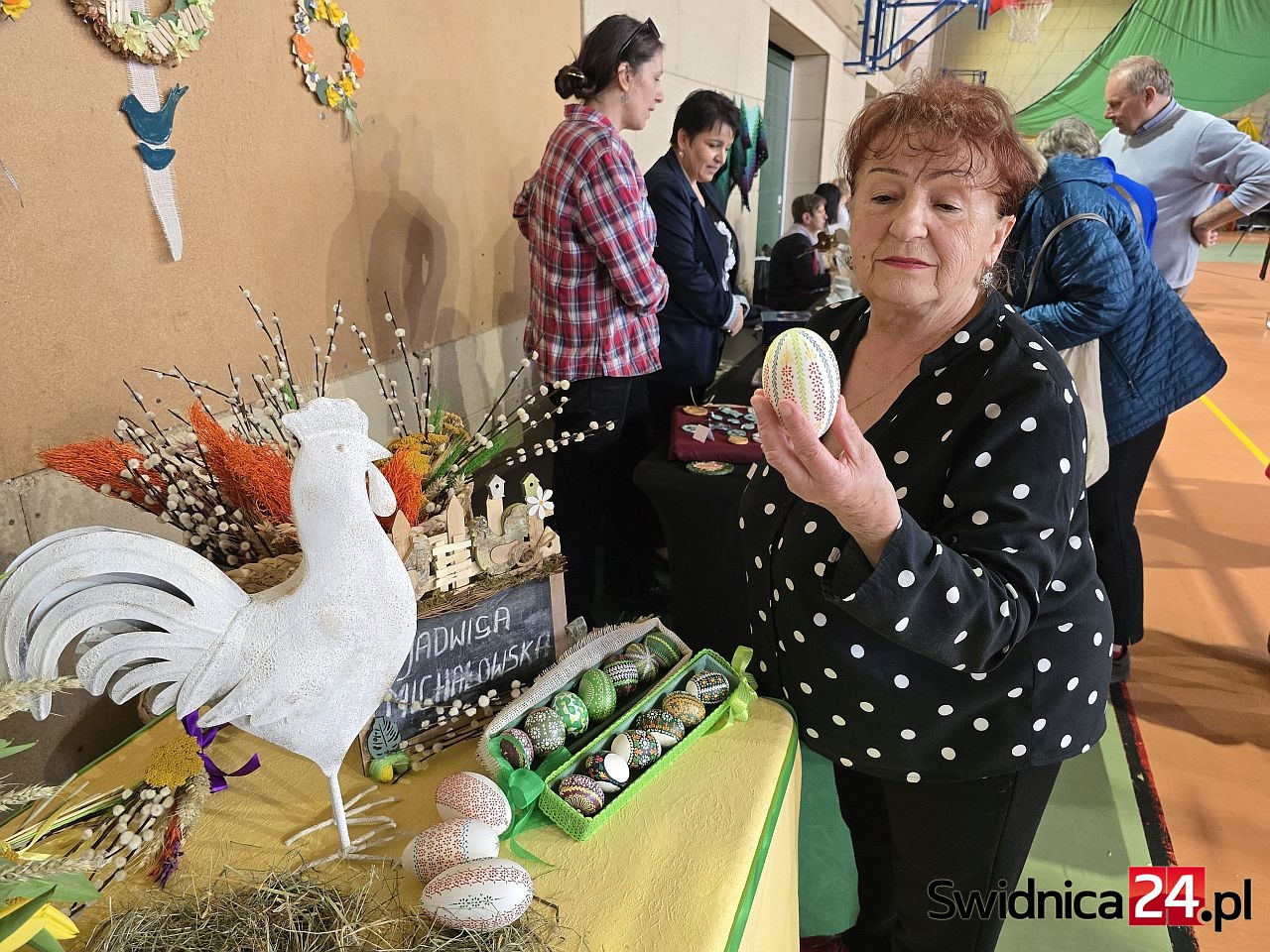 Sportową na co dzień przestrzeń zapełniły stoiska z ciastami, rękodziełem i upominkami. Wyjątkowym gościem była Jadwiga Michałowska, uznana artystka, która specjalizuje się w zdobieniu wielkanocnych jajek najstarszą, sięgającą XII wieku metodą batikową, polegająca na nakładaniu roztopionego wosku na skorupkę i barwieniu jajka. – Najpierw trzeba stworzyć wydmuszkę z tylko jedną dziurką, a na nią nanoszony jest wosk. Każdy wzór jest mojego autorstwa – mówi pani Jadwiga, której prace można oglądać także na wystawie w Muzeum Etnograficznym we Wrocławiu. Artystka tworzy także unikalne palmy wielkanocne.