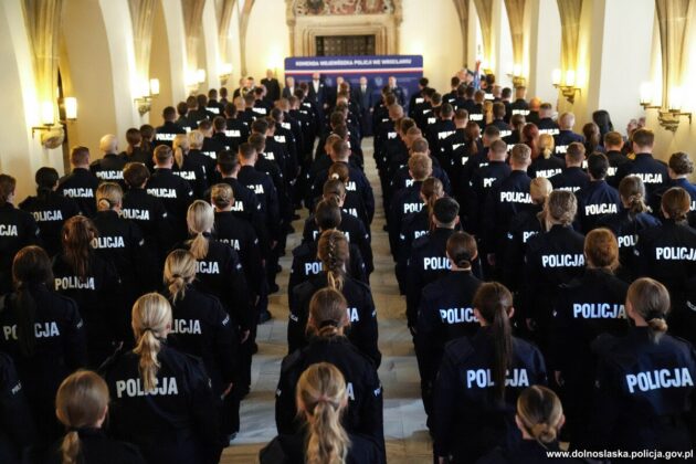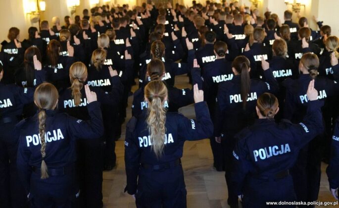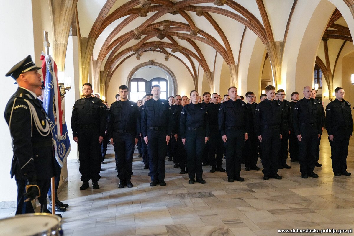 6 marca w Sali Rycerskiej wrocławskiego Ratusza odbyła się uroczystość ślubowania nowo przyjętych funkcjonariuszy Policji. – Do dolnośląskiego garnizonu wstąpiło tym razem 134 nowych policjantów z całego województwa, w tym 56 kobiet. Funkcjonariusze trafią m.in. do komend miejskich i powiatowych – informują dolnośląscy mundurowi.