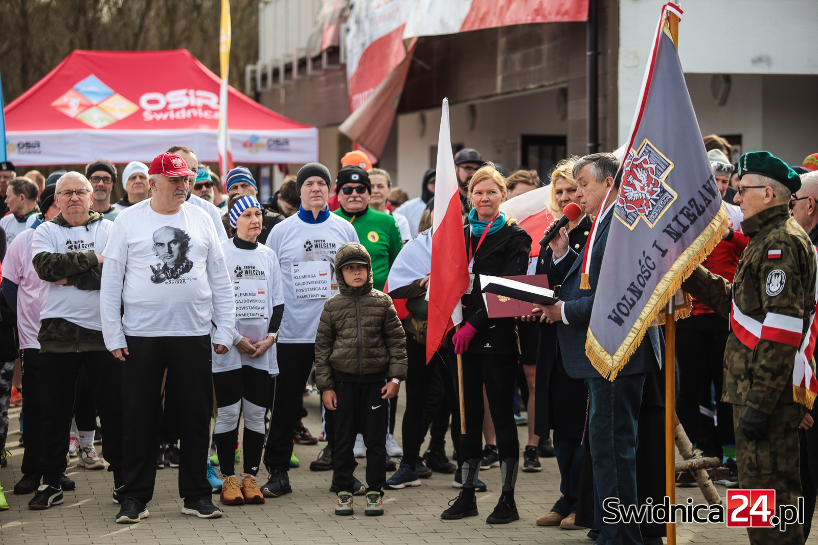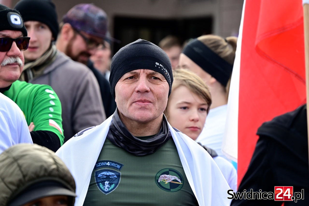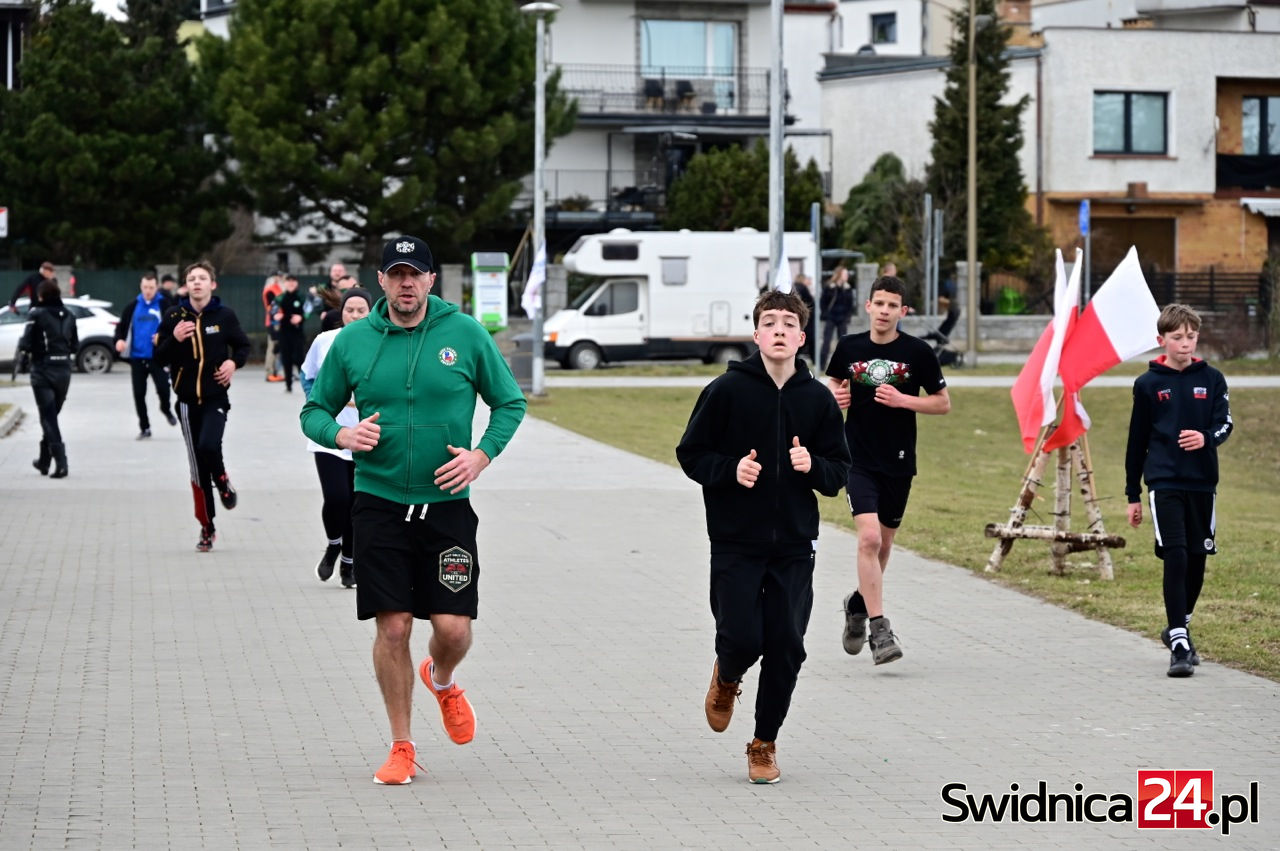 Świdnicki bieg, w którym wzięło udział około 200 osób, wystartował 1 marca w samo południe. – Jest to bieg pamięci Żołnierzy Wyklętych, żołnierzom, którzy walczyli za naszą Polskę, a którzy przez komunistów zostali potraktowani w taki sposób, że do dnia dzisiejszego nie odnaleziono wszystkich grobów wszystkich zabitych. Ostatnia informacja, która o tym świadczy dobitnie, pochodzi z Otwocka, gdzie zlokalizowano szczątki około 600 żołnierzy Armii Krajowej – przypomina Tadeusz Grabowski, prezes Świdnickiego Stowarzyszenia Patriotycznego i organizator wydarzenia. – Bardzo dziękuję wszystkim, którzy uczestniczyli w biegu – szczególnie tym najmłodszym, którzy może jeszcze nie wiedzą, kim byli Żołnierze Wyklęci, ale mam nadzieję, że gdy dorosną to będą wiedzieli, że to była ta część naszego społeczeństwa, która zachowała się jak trzeba – podkreśla Grabowski.