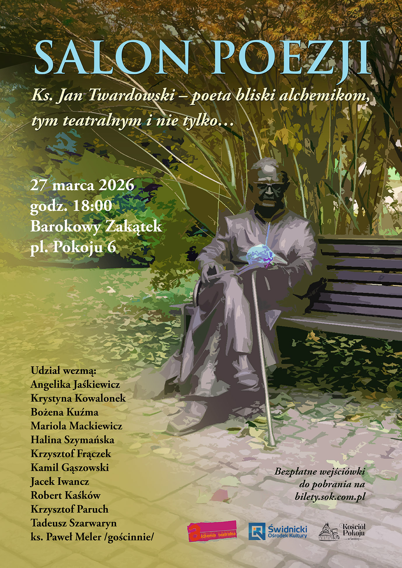 Salon Poezji pt. „Poeta bliski alchemikom, tym teatralnym i nie tylko…” będzie okazją do wsłuchania się w poezję, która w niezwykły sposób łączy refleksję duchową z uważną obserwacją świata. To wieczór dla wszystkich, którzy wierzą, że słowo – podobnie jak w alchemii – potrafi przemieniać zwykłą chwilę w doświadczenie piękna i wzruszenia.