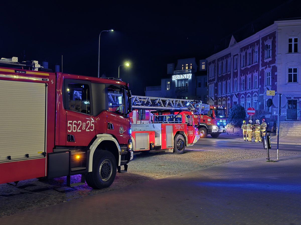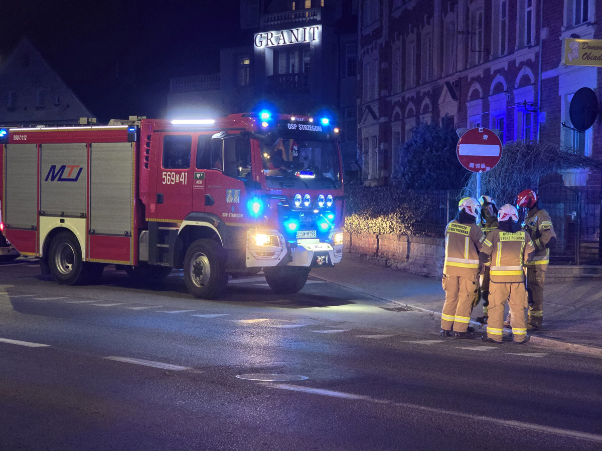O godzinie 20.52 do służb ratunkowych wpłynęło koleje zgłoszenie związane z podejrzeniem wycieku gazu, tym razem przy ulicy Ignacego Paderewskiego w Strzegomiu. Na miejsce zadysponowano pięć zastępów straży pożarnej, pogotowie gazowe oraz policję. Ewakuowano mieszkańców budynku wielorodzinnego, a pracownicy pogotowia gazowego prowadzili kontrolę instalacji w budynku. Około godziny 21.40 służby zlokalizowały w piwnicy butlę z propanem-butanem z nieszczelnym zaworem, którą wyniesiono na zewnątrz. Po sprawdzeniu budynku miernikami wielogazowymi, budynek przekazano zarządcy a mieszkańcy wrócili do swoich lokali. Działania zakończono przed godziną 22.00.