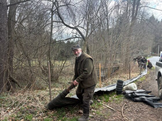 – Wraz z nadejściem wiosny żaby i ropuchy wyruszają z miejsc zimowania do zbiorników wodnych, gdzie się rozmnażają. Niestety na ich drodze często pojawia się śmiertelna przeszkoda — drogi,  dlatego nasi dzielni pracownicy oraz wolontariusze stawiają specjalne płotki i żywołapki, aby bezpiecznie przenosić płazy w odpowiednie miejsca. Płotki spotkacie m.in. w Leśnictwach Złoty Las i Piskorzów, a w leśnictwie Zagórze przy jeziorze działają także samoobsługowe przejścia dla płazów – informuje nadleśnictwo.