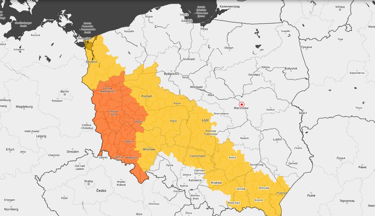 Rządowe Centrum Bezpieczeństwa informuje, że możliwe są podtopienia i zaleca, by nie zbliżać się do wezbranych rzek oraz słuchać poleceń służb.
