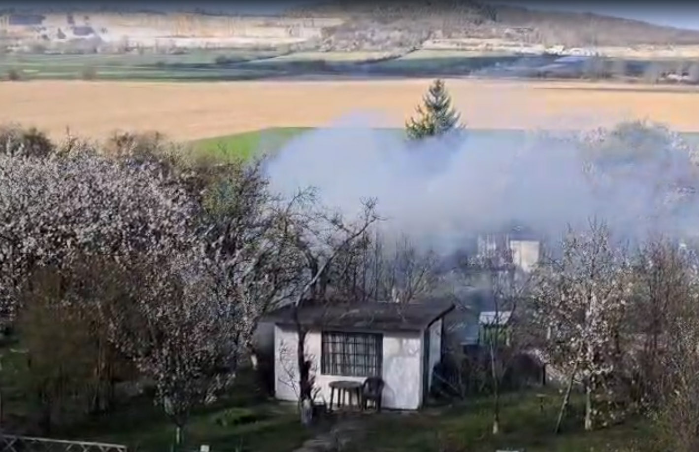 Cztery zastępy straży pożarnej zostały zadysponowane we wtorkowe popołudnie na teren ogródków działkowych przy ulicy Kalcytowej w Strzegomiu. Powodem interwencji był pożar altany, który wybuchł niemal równolegle z pożarem nieużytków w pobliskiej okolicy.