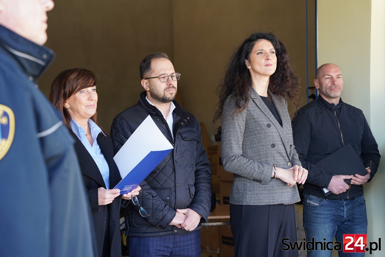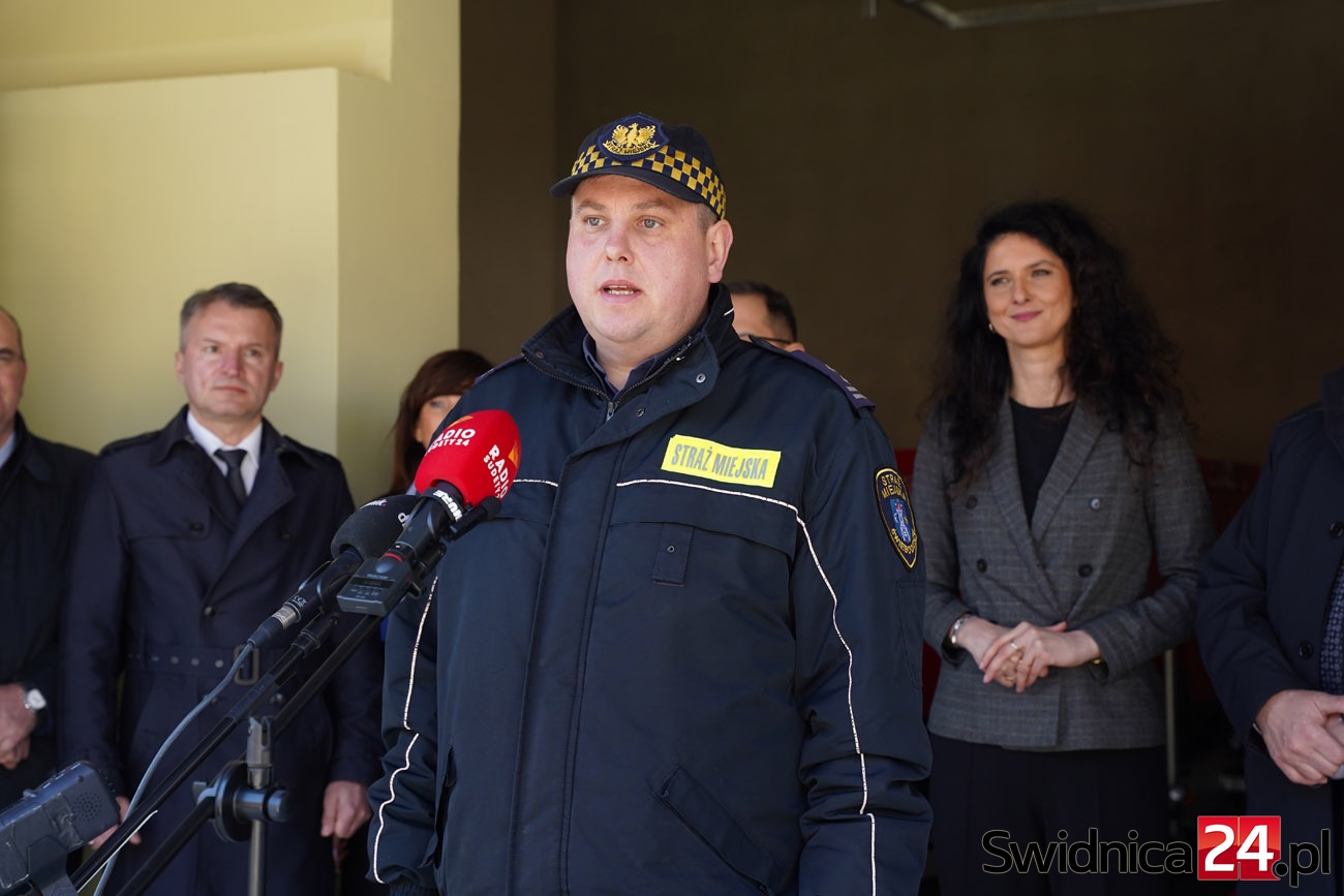 Prezentacja obiektu i sprzętu odbyła się 8 kwietnia przy magazynie na ulicy Sportowej w Świebodzicach. W spotkaniu, oprócz wojewody Anny Żabskiej, burmistrza Pawła Ozgi i jego zastępcy Tobiasza Wysoczańskiego, udział wzięli komendant Straży Miejskiej Łukasz Gil, komendant JRG PSP Marek Leśnicki, komendantka policji Katarzyna Wilk, prezesi ZGK i ZWiK – Sławomir Sprawka i Grzegorz Cabanek, wykonawca Piotr Pasturczak oraz pracownicy wydziału inwestycji.