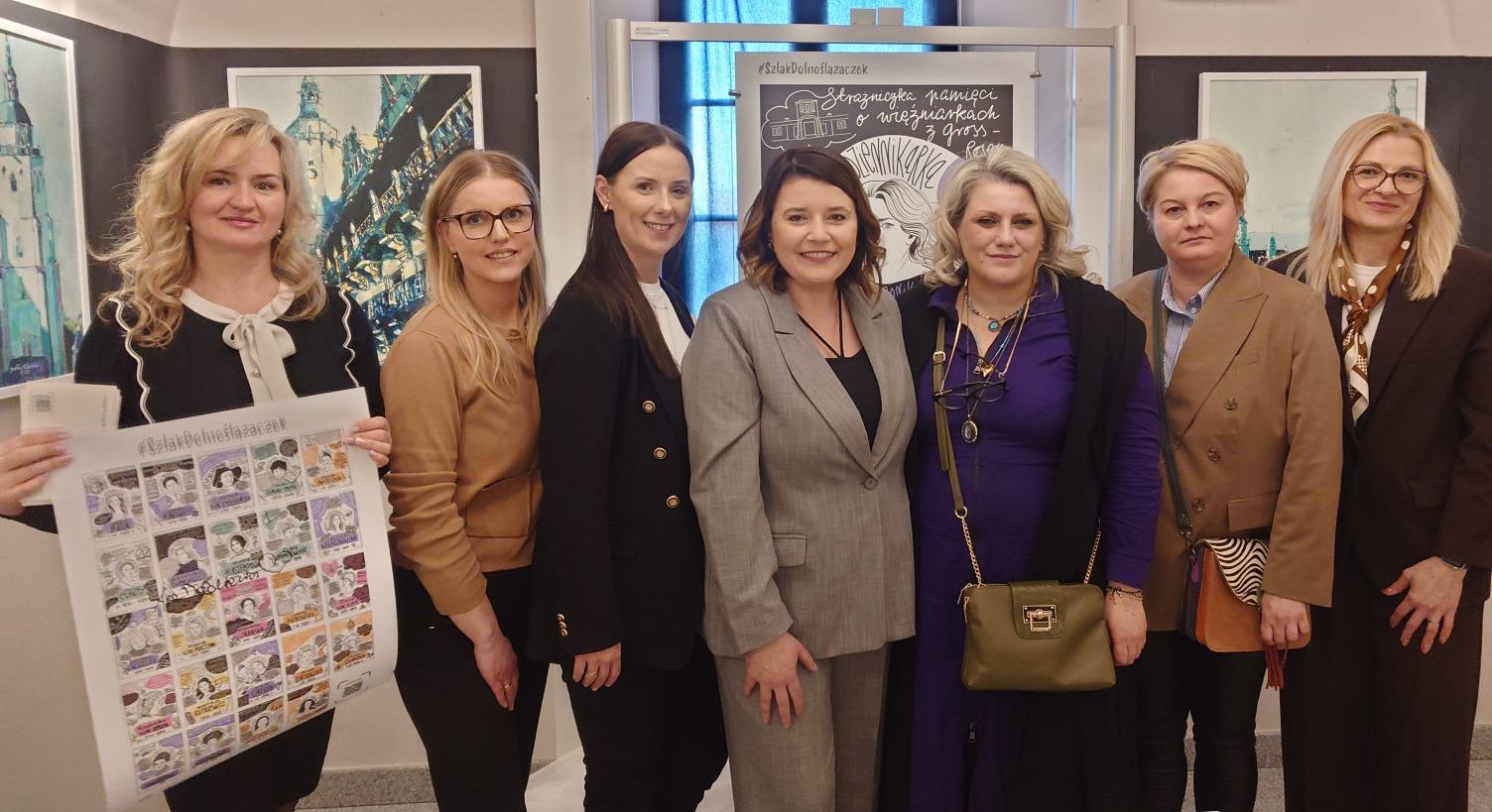 Szczególnym gościem wydarzenia była Agnieszka Dobkiewicz – świdnicka pisarka, dziennikarka, wiceprzewodnicząca Rady Kobiet Powiatu Świdnickiego, a zarazem jedna z 24 bohaterek prezentowanych na wystawie. – Jestem bardzo wzruszona, to dla mnie wielkie wydarzenie. Mam nadzieję, że także dla mieszkańców powiatu świdnickiego, bo przecież jestem stąd. Czuję też dumę, bo obecność na tym szlaku pomoże jeszcze szerzej upamiętnić kobiety więzione w Gross-Rosen, o których piszę w swojej twórczości – zaznacza pisarka.