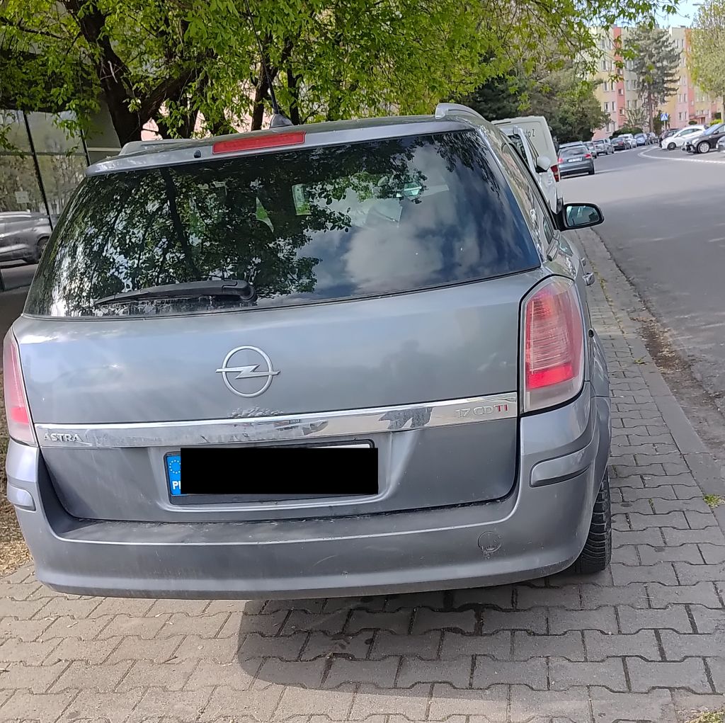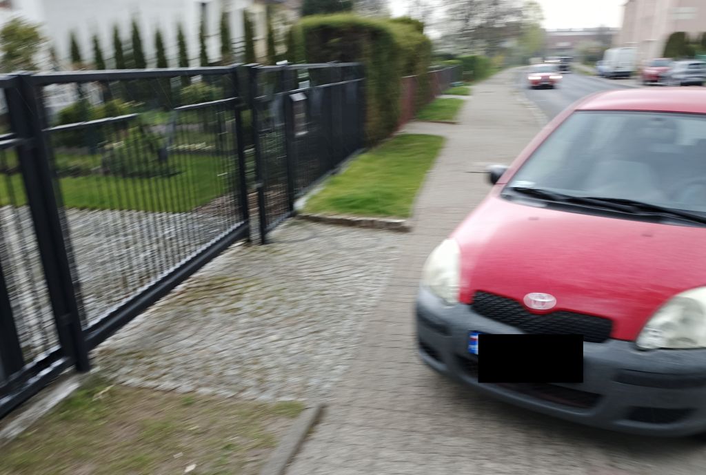 ul. Prądzyńskiego (Opel Corsa na srodku wjzdu do zatoki parkingowej)