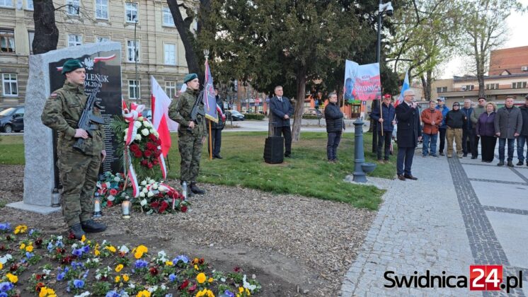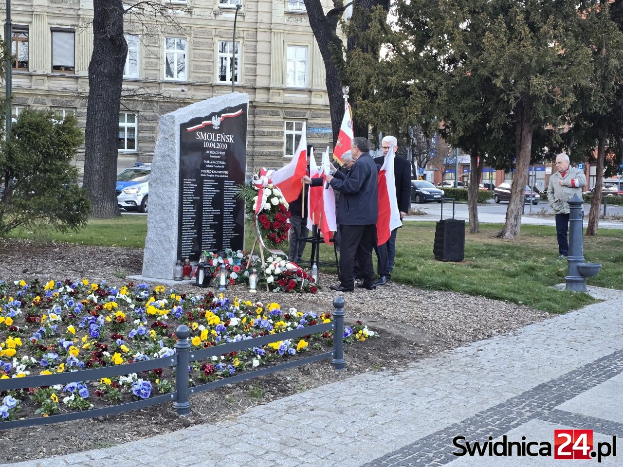 Samorządowcy i politycy związani z prawicowym Prawem i Sprawiedliwością po raz pierwszy upamiętnili rocznicę katastrofy rządowego samolotu pod Smoleńskiem przed nową tablicą na Placu Grunwaldzkim w Świdnicy. W godzinach przedpołudniowych wieniec złożyli prezydent Świdnicy, przewodniczący RM, komendant straży miejskiej i jeden z radnych. Wieczorem poseł PiS Ireneusz Zyska mówił o podziałach, wybuchach i zamachu.