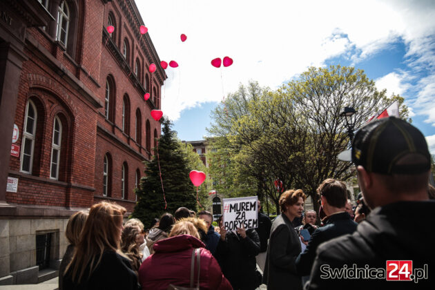 30 kwietnia w Sądzie Okręgowym w Świdnicy rozpatrywana była skarga na zastosowanie tymczasowego aresztu. Przed gmachem sądu zorganizowana została pikieta w obronie podejrzanego. – Czujemy rozżalenie, że organy państwa funkcjonują tak, jak funkcjonują. Czujemy też nadzieję, że Sąd Okręgowy weźmie pod uwagę zażalenie obrony i uchyli środek zapobiegawczy, jakim jest areszt tymczasowy dla Borysa i podejmie decyzję, że będzie on mógł odpowiadać z wolnej stopy, a kwalifikacja czynu zostanie zmieniona. Tego wymaga sprawiedliwość. Jako obywatele mamy prawo do obrony własnego życia i zdrowia. Państwo nie powinno ograniczać tego prawa, czy też formułować zarzuty zabójstwa w przypadku obrony koniecznej – mówił Artur Chabło, organizator czwartkowej demonstracji.