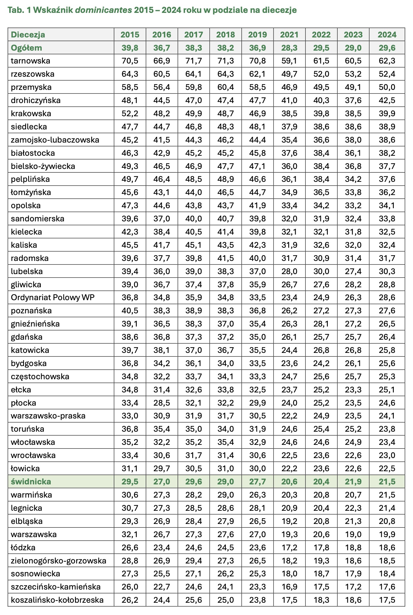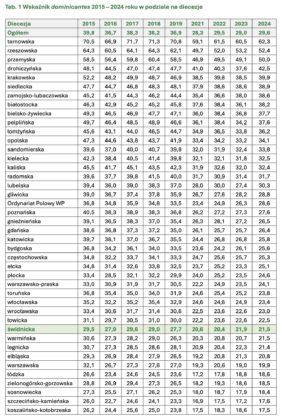 Z pełnym raportem „Pejzaż religijności diecezji świdnickiej za 2024 rok” można zapoznać się na stronie internetowej Świdnickiej Kurii Biskupiej.