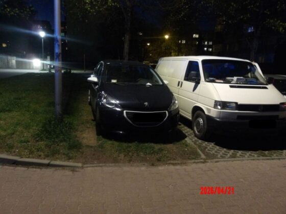 21.04.2026r. godz.20.47 – dyżurny Straży Miejskiej w Świdnicy otrzymał telefoniczne zgłoszenie dotyczące niszczenia trawnika przez parkujący na nim pojazd marki Peugeot na ulicy kardynała Stefana Wyszyńskiego. Funkcjonariusze potwierdzili zgłoszenie. Kierowca został ukarany mandatem karnym.