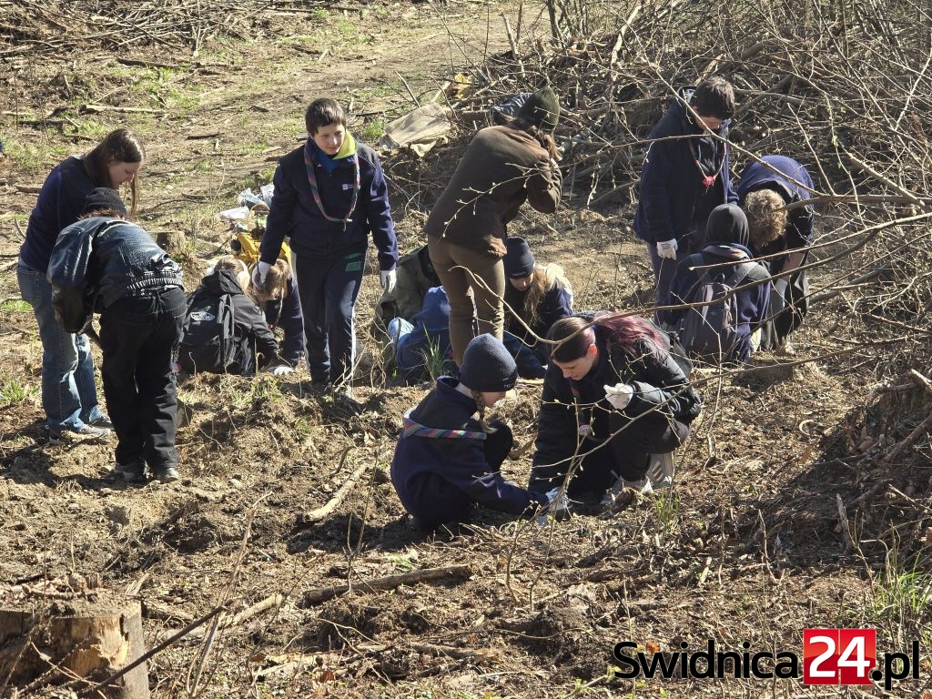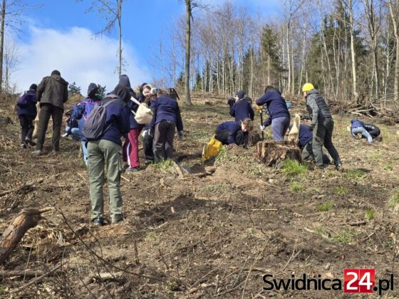W tym roku leśnicy przygotowali pod nasadzenia specjalne dołki, co zdecydowanie ułatwiło i przyśpieszyło pracę. Z zapałem uczestnicy akcji sadzili na stromym zboczu po wykarczowanym fragmencie lasu małych następców wyciętych drzew. Do ziemi trafiły sadzonki lipy, krzewu kaliny koralowej oraz – ku zaskoczeniu wszystkich – także sadzonki jabłoni i gruszy. – To jest bardzo ważny element wzbogacenia flory leśnej, po to żeby ta bioróżnorodność była jak największa, wówczas odporność lasu wzrasta. Gatunki te przyciągają również niezwykle pożyteczne owady – tłumaczy Jerzy Zemlik i odpowiada także na pytanie, jaka jest proporcja drzew wycinanych do nasadzanych.