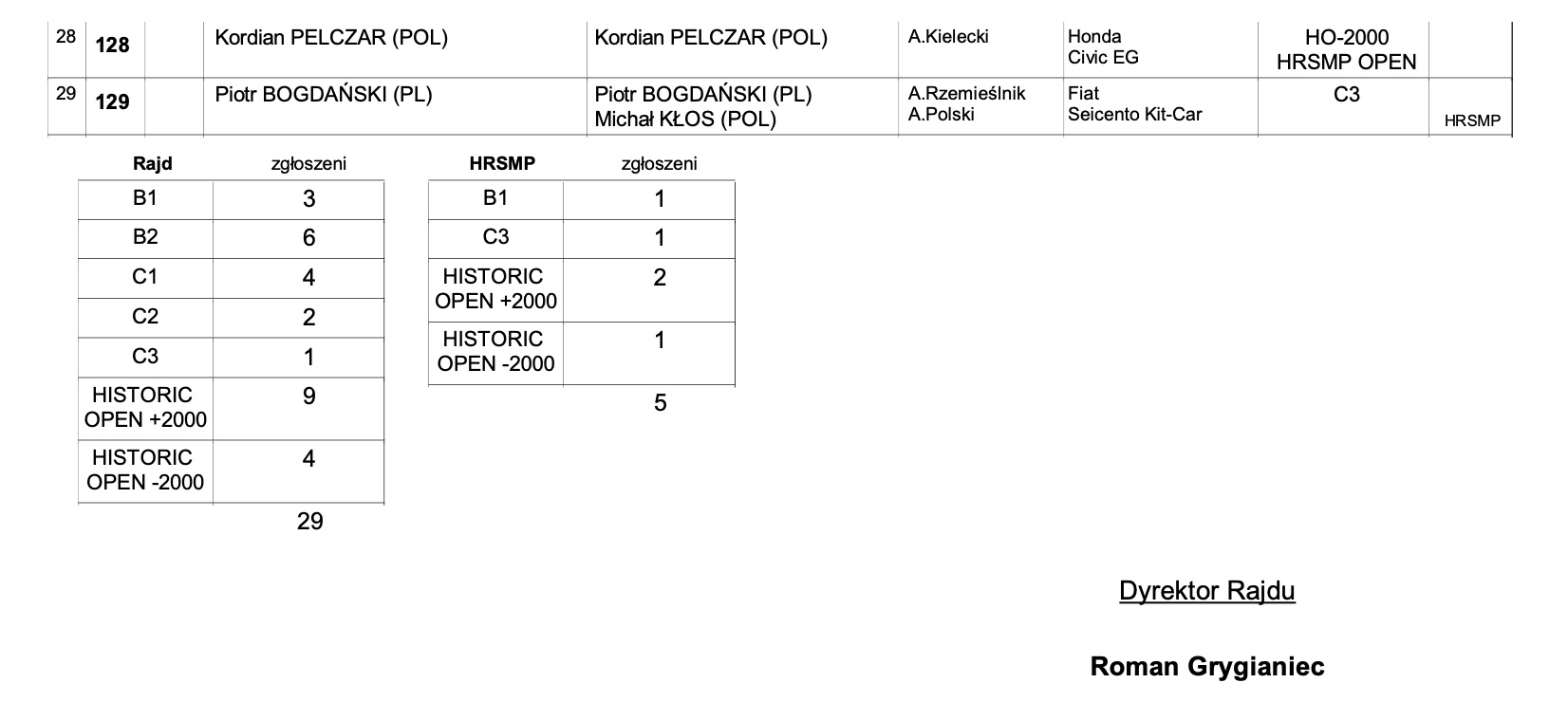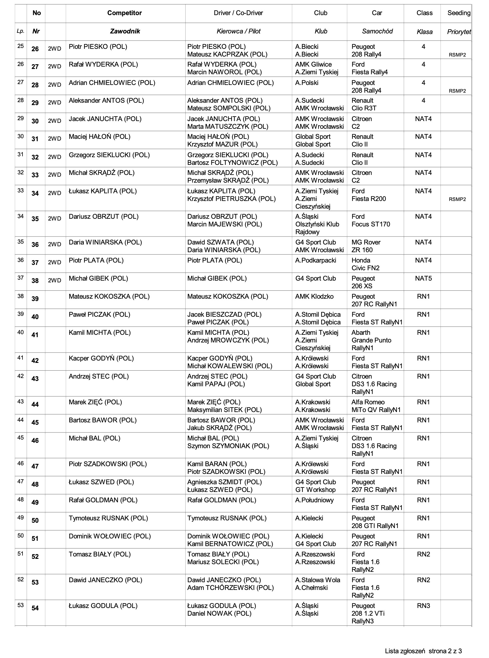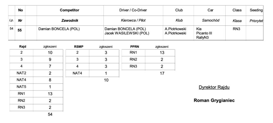 Listy zgłoszeń do 54. Rajdu Świdnickiego: