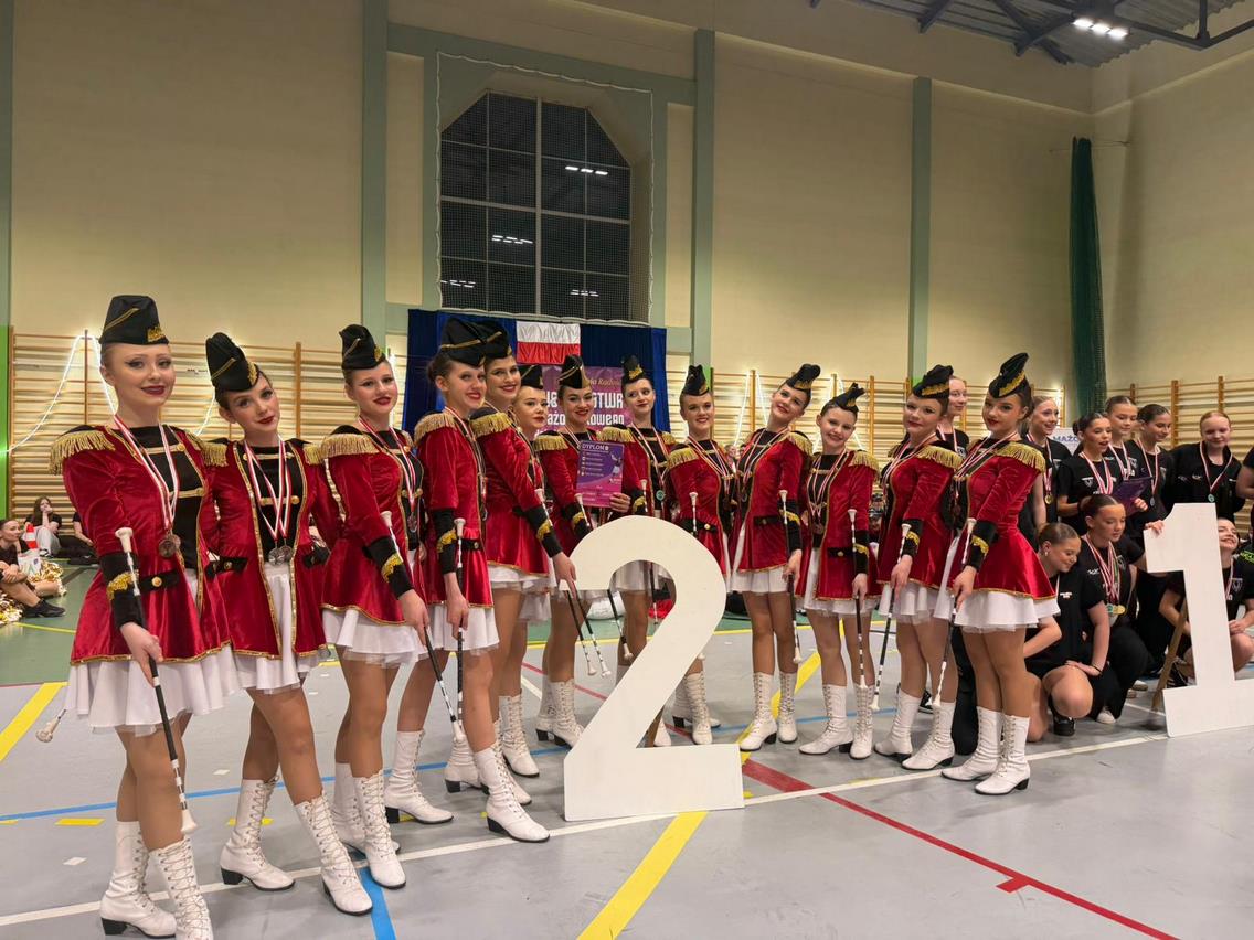 Na parkiecie zawodów w Górze zespół zaprezentował układy z buławą w folkowym klimacie i od razu sięgnął po laury..