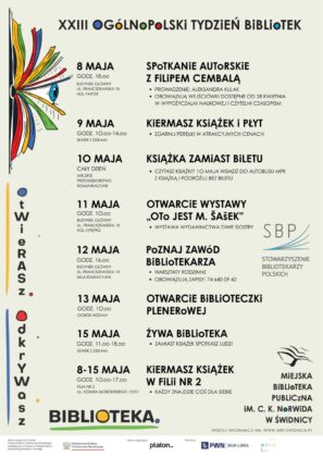 W dniach 8-15 maja w Miejskiej Bibliotece Publicznej w Świdnicy odbędą się wydarzenia organizowane w ramach XXIII Ogólnopolskiego Tygodnia Bibliotek.