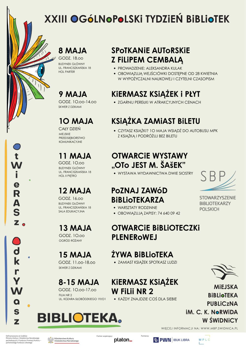 /Materiały, plakaty: Miejska Biblioteka Publiczna w Świdnicy, Urząd Miejski w Świdnicy/