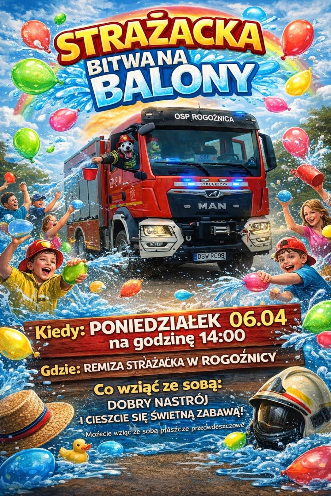 Wodna bitwa odbędzie się również na boisku sportowym w Imbramowicach – początek o godzinie 10.00, strażacki śmigus-dyngus zorganizowany zostanie na placu przy remizie OSP Olszany – początek o godzinie 11.00, natomiast przy remizie strażackiej w Rogoźnicy odbędzie się bitwa na balony – początek o godzinie 14.00.