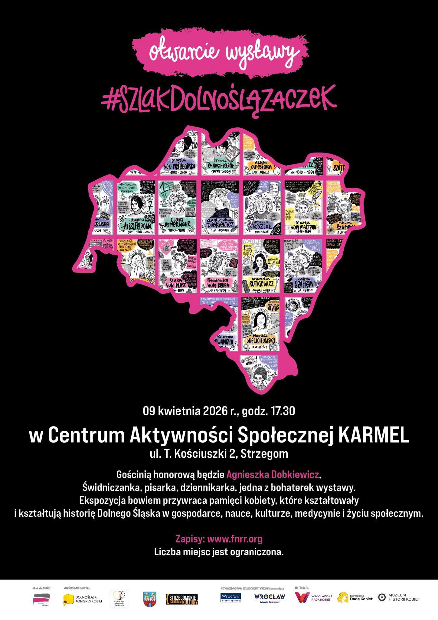 – Ekspozycja ukazuje różnorodne życiorysy, od działaczek społecznych po kobiety zaangażowane w życie publiczne. To opowieść o determinacji, odwadze i wpływie, jaki Dolnoślązaczki wywarły na rozwój swojego otoczenia – informuje Małgorzata Kus-Pożoga, naczelniczka Wydziału Promocji Urzędu Miejskiego w Strzegomiu. Dodaje też, że honorową uczestniczką spotkania będzie pisarka, dziennikarka oraz jedna z bohaterek wystawy – Agnieszka Dobkiewicz.Autorką prezentowanych grafik jest Lucyna Cwiach, a organizatorami wydarzenia: Fundacja Na Rzecz Równości, Stowarzyszenie Dolnośląski Kongres Kobiet, Gmina Strzegom, Rada Kobiet w Powiecie Świdnickim oraz Strzegomskie Centrum Kultury.