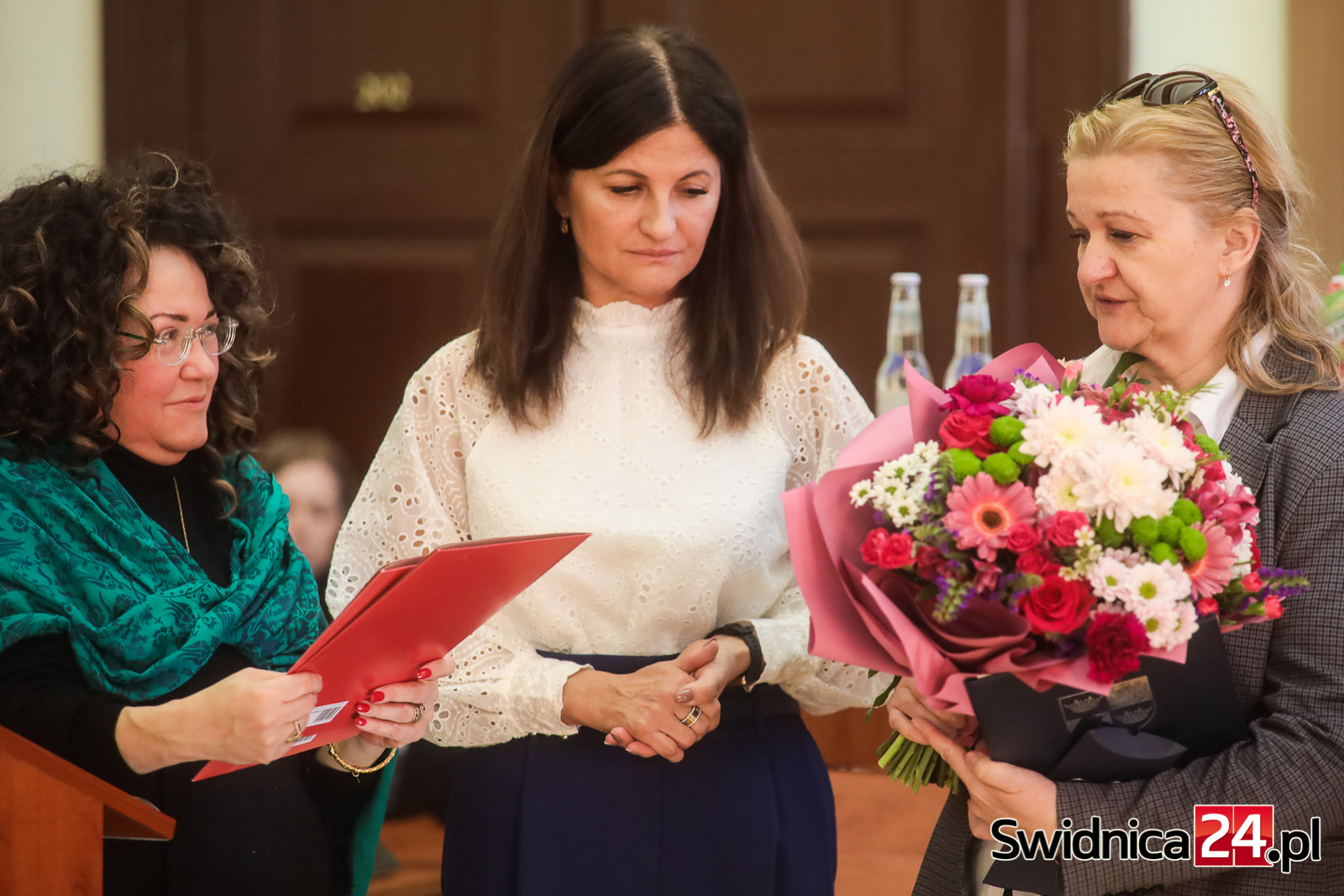 – Związek Nauczycielstwa Polskiego stał zawsze sercem przy Szkole Podstawowej nr 315 i w tym zakresie nic się nie zmieniło – mówiła przed złożeniem gratulacji prezes ZNP w Świdnicy Aleksandra Szukała-Woźniak. Wskazała na ogromne zaangażowanie ostatniej dyrektorki szkoły wskazując, że zapłaciła ona za to nawet zdrowiem. Doceniła również wicedyrektorkę Magdalenę Myczak. – Jesteśmy im wdzięczni za to, że w tych bardzo trudnych chwilach, chwiejnych, albowiem całe rzesze osób, które deklarowały, ze są przyjaciółmi tej placówki, o tej przyjaźni zapomniały. Dziś apel z mojej strony i środowiska związkowego: dajmy szansę nowej dyrekcji, nowej strukturze kierowniczej na to, żeby mogła się wykazać, sprawdzić nowymi, kreatywnymi pomysłami. Niech ta szkoła wreszcie dostanie trochę spokoju, bo ciężko jest zaiste pracować w atmosferze stałej dezinformacji, że za chwilę będzie podjęta dyskusja na temat zamknięcia placówki, na temat zwolnień. Proszę sobie zadać pytanie, czy ktoś z państwa żył permanentnie przez tyle lat w takim stresie. Tak się nie da pracować. Szkoła potrzebuje spokoju i przyjaciół. Nie będę dzisiaj mówić o potrzebach remontowych i inwestycyjnych.