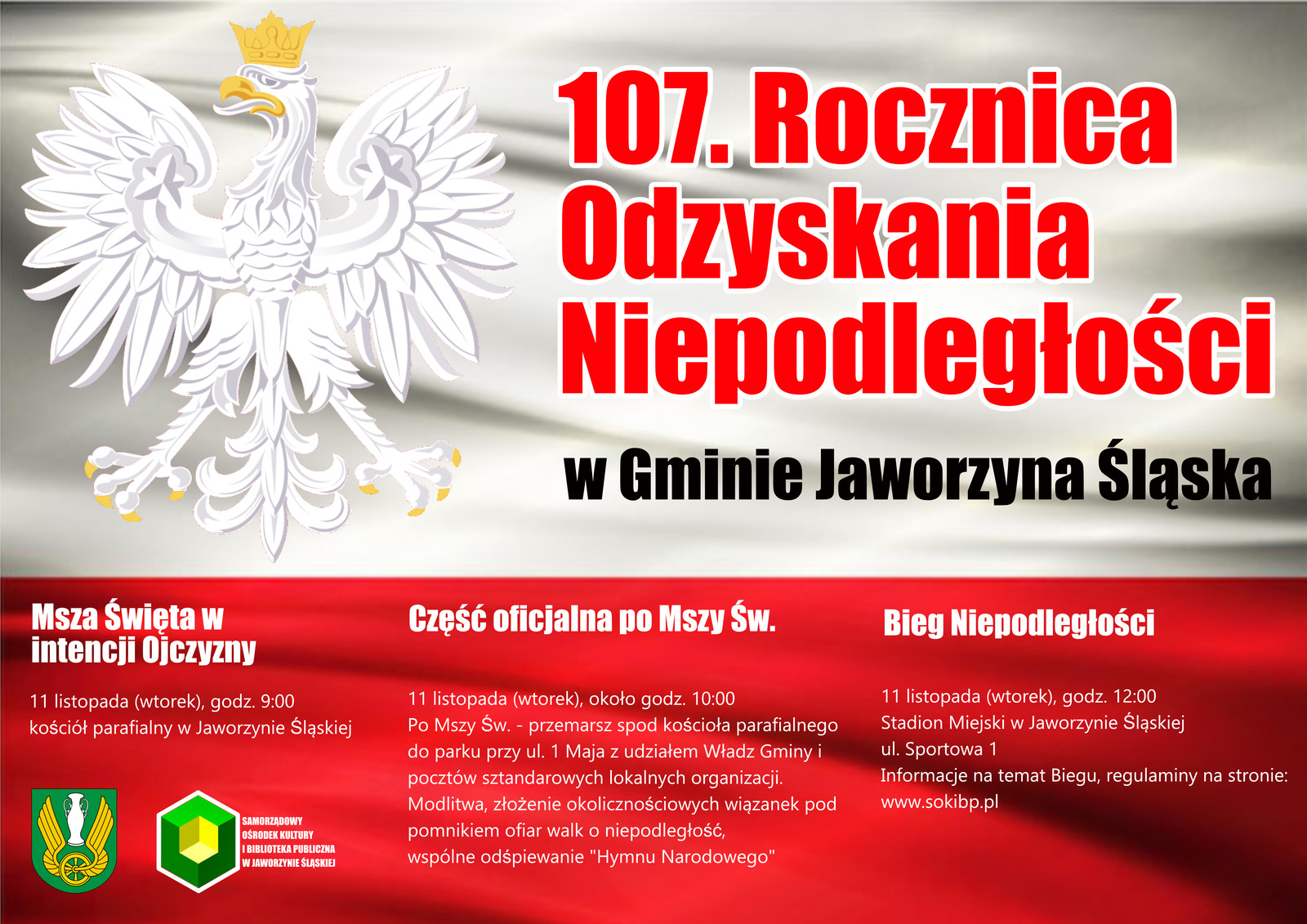 Urząd Gminy zaprasza na gminne obchody 107. Rocznicy Odzyskania przez Polskę Niepodległości.