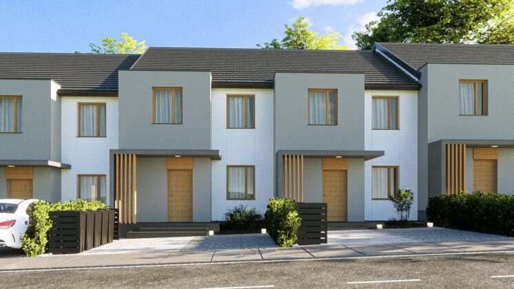 Od północy razem budynki tworzą pierzeję wzdłuż ulicy Malinowej o długości 48,52m. Elewacje zaprojektowano jako tynkowane w dwóch kolorach złamanej bieli odcieniu szarości z akcentami drewnianymi przy ganku wejściowym. Otwarty ogród z podświetleniem daje nowoczesny wygląd.