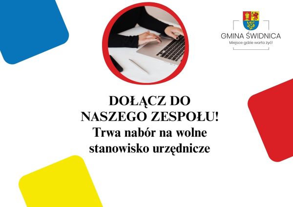 Wójt Gminy Świdnica ogłasza II otwarty i konkurencyjny nabór na wolne stanowisko urzędnicze w Urzędzie Gminy Świdnica